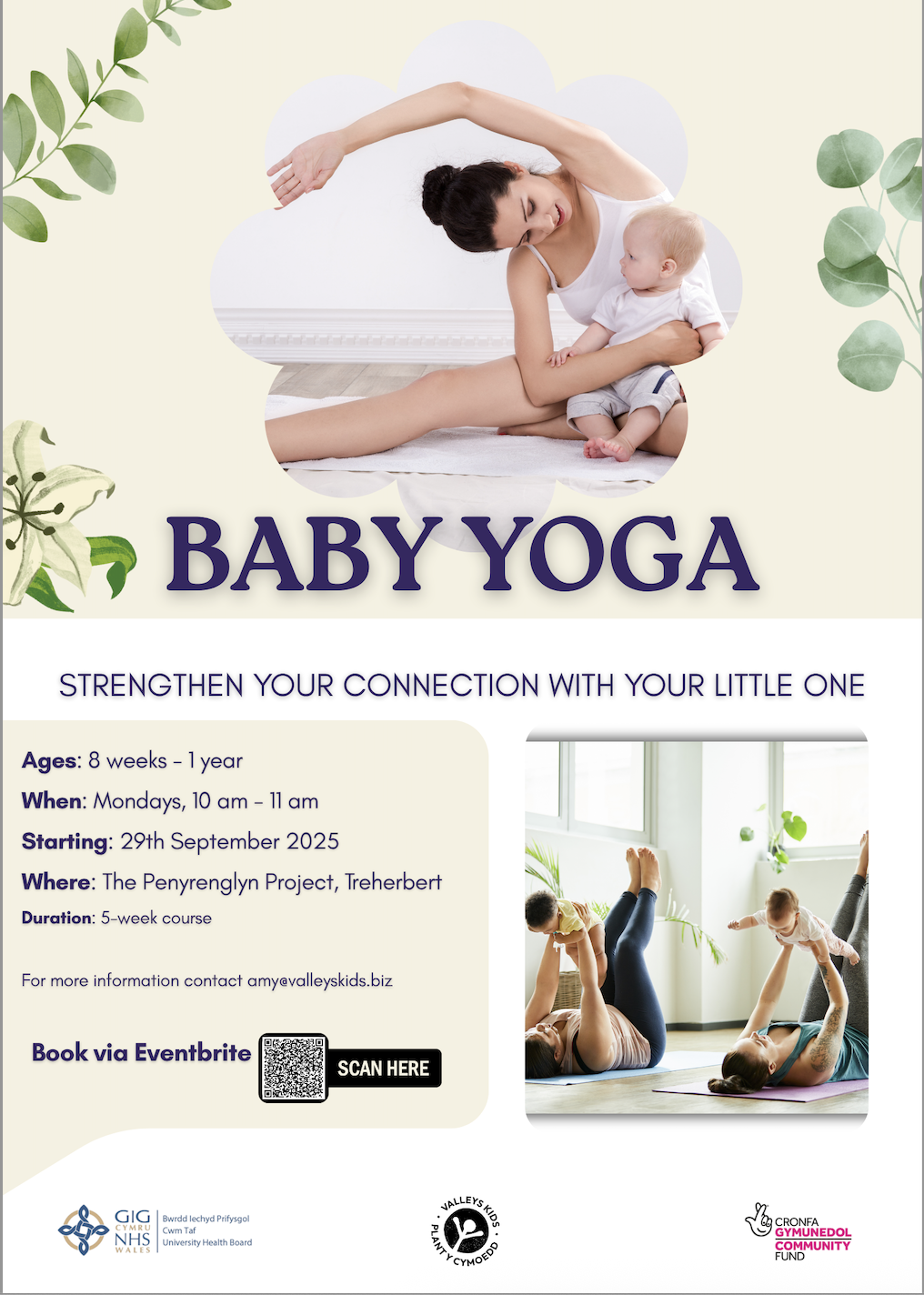 We are very excited to announce a 5 week Baby Yoga Class in the Penyrenglyn Project, beginning this September.